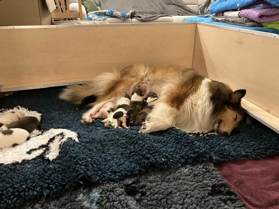 Sie sind gelandet! Wir stellen Phoebes und Ninhos Welpen vor. Zehn proppere, süße Flauschkugeln. Es sind sechs Rüden und vier Hündinnen. Wir haben 3 Rüden in sable, 1 Rüden in tricolour und 2 Rüden cHW sable. Und 2 Hündinnen in sable-white und 2 in CHW sable.